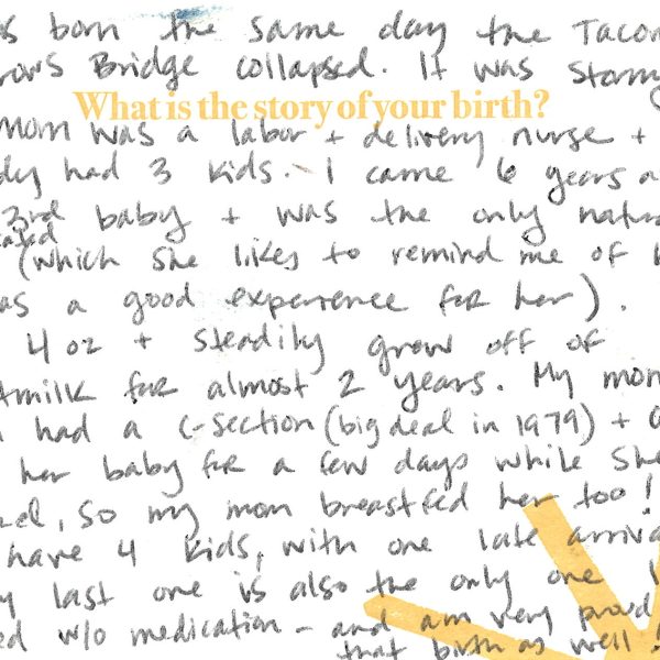 I was born the same day the Tacoma Narrow’s Bridge collapsed. It was stormy! My mom was a labor & delivery nurse and already had 3 kids. I cam 6 years after her 3rd baby and was the only natural/unmedicated birth (which she likes to remind me of because it was a good experience for her). I was 9 lb 4 oz and steadily grew off of breastmilk for almost 2 years. My mom’s friend had a c-section (big deal in 1979) and couldn’t nurse her baby for a few days while she recovered, so my mom breastfed her too!