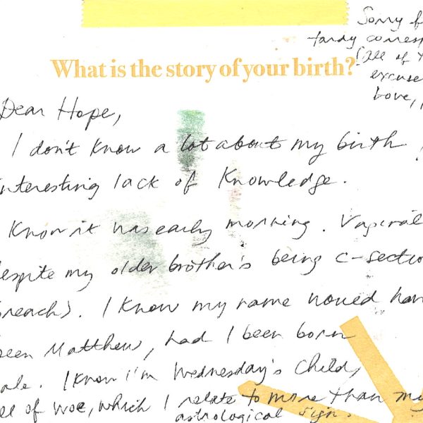 I know it was early morning. Vaginal despite my older brother’s being a c-section (breach). I know my name would have been Matthew, had I been born male. I know I’m Wednesday’s child, full of woe, which I relate to more than my astrological sign.